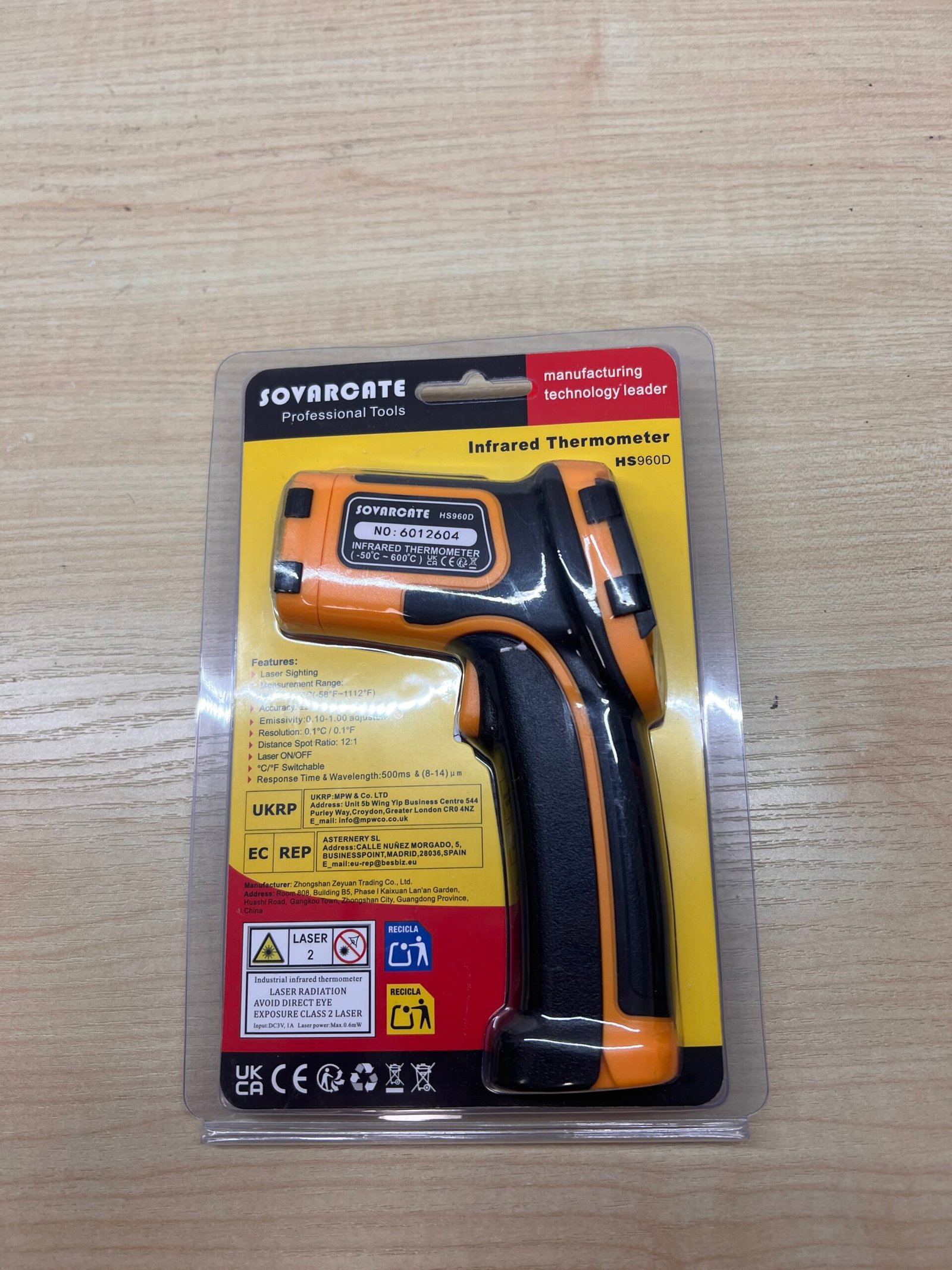 Tikslus ir patogus lazerinis termometras leidžia greitai pamatuoti temperatūrą be kontakto. Tinka naudojimui virtuvėje, kepimui, virimui ar šaldikliams – galite matuoti paviršiaus temperatūrą saugiai ir higieniškai.