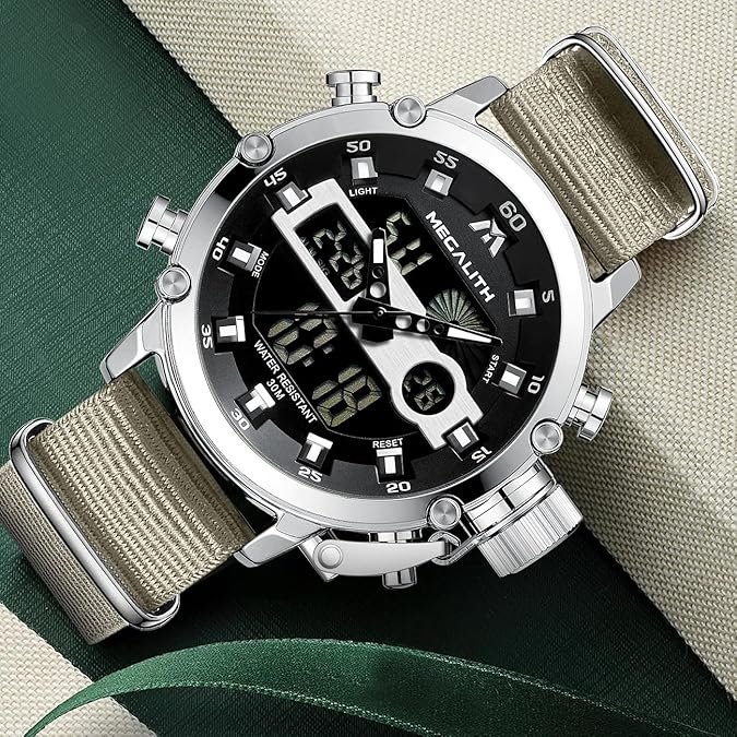 MEGALITH vyriškas skaitmeninis sportinis laikrodis – daugiafunkcis, vandeniui atsparus, su analoginiu chronometru, LED apšvietimu, žadintuvu ir kalendoriumi.